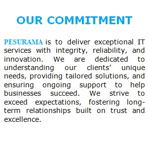 At Pesurama, we offer a comprehensive range of IT services designed to meet the unique needs of businesses in today’s fast-paced digital world. Our expert team is dedicated to delivering innovative and cost-effective solutions that enhance efficiency, security, and scalability. Whether you’re a small startup or an established enterprise, Pesurama provides tailored IT strategies that align with your goals, ensuring long-term success. We specialize in cloud computing, network management, cybersecurity, IT support, and business automation. Our cloud services help businesses scale with ease while ensuring data security and access from anywhere.